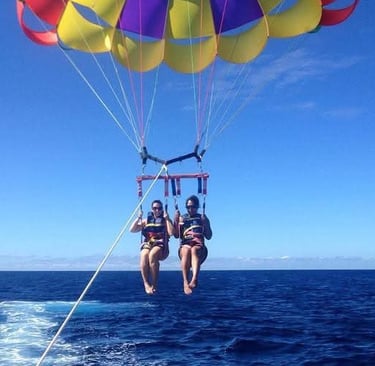 Soar 800 ft above the bay of Honduras and take in breathtaking views of living reefs and jungle-covered mountains 🌴🌊. Fly safely with our experienced team and advanced lift-off technology. Afterward, relax on the beach with tropical drinks, WiFi, beach chairs, umbrellas, and showers.