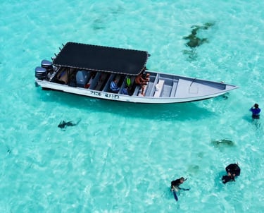 Exclusive Pigeon Cay Adventure + Swimming with Nurse Sharks is a private island experience that takes you to the crystal-clear waters of Pigeon Cay, where you can safely swim alongside friendly nurse sharks in shallow, calm conditions. The tour also includes a cultural visit to Oak Ridge, known as “Little Venice”, famous for its colorful over-the-water homes and Garífuna heritage, followed by a stop in Santa Helena to enjoy a freshly prepared local lunch, blending wildlife interaction, island culture, scenic views, and authentic flavors into one unforgettable Roatán adventure.
