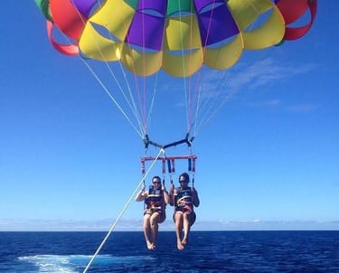 Parasailing is your unique opportunity to admire the breathtaking beauty of Roatán from above — soaring high over the Bay of Honduras at nearly 800 feet! Feel the thrill and awe as you look down on the island’s magnificent coral reefs and fly at eye level with the lush jungle-covered mountains.